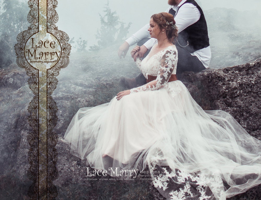 Beautiful Boho Style Wedding Dress With Long Lace Sleeves A Etsy De